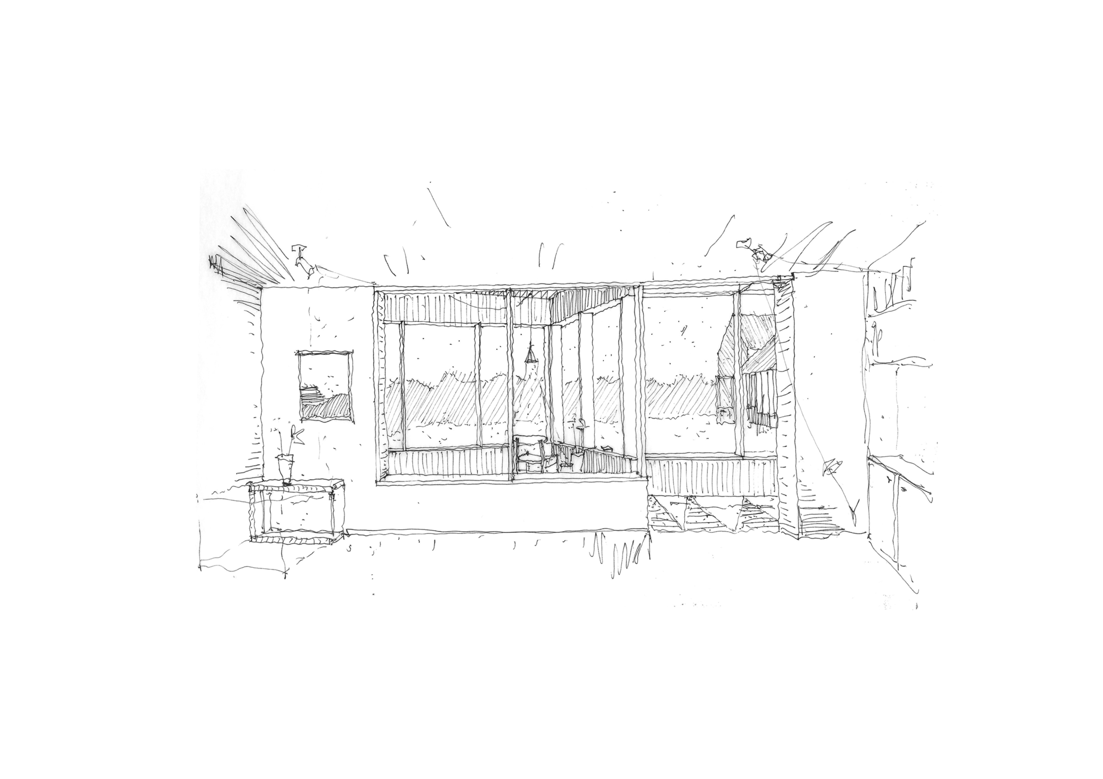 Orchard is set within a new landscape, although the soft planting has been paused to allow the house to nestle into the surrounding AONB. When grown the planting will meld at low level and leave only the doors visible, and a chance to look out from the internal spaces into the garden.